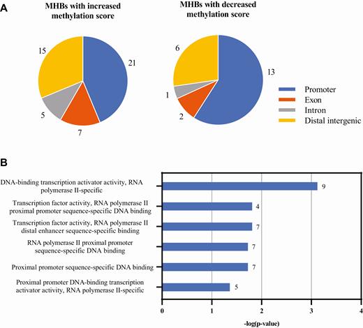 该研究结果显示,在FTC和FA组织样本中,总共有70个DNA MHB标志物有显著不同的特征,其中大约一半位于启动子内,如图1所示。所有基因本体(Gene Ontology)都显示,标记的相关基因都与“DNA结合”有关,这意味着DNA结合的失活在FTC的发展中起重要作用。研究团队使用这些DNA MHB标记物建立了一个随机森林模型,用于在验证队列中区分FTC与FA,其曲线下面积为0.994,如图3B所示。当使用此模型对TT-UMP样本进行评估时,那些具有较少驱动突变的样本也相应地表现出较低的分数。