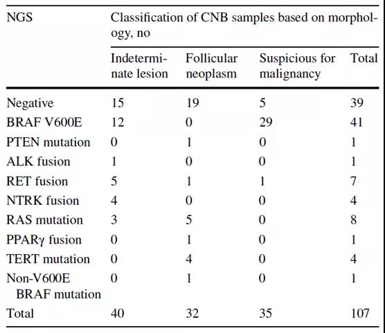 本研究回顾性分析107例同时具有CNB及匹配的切除标本的甲状腺结节患者,并根据临床诊断标准进行诊断和归类。