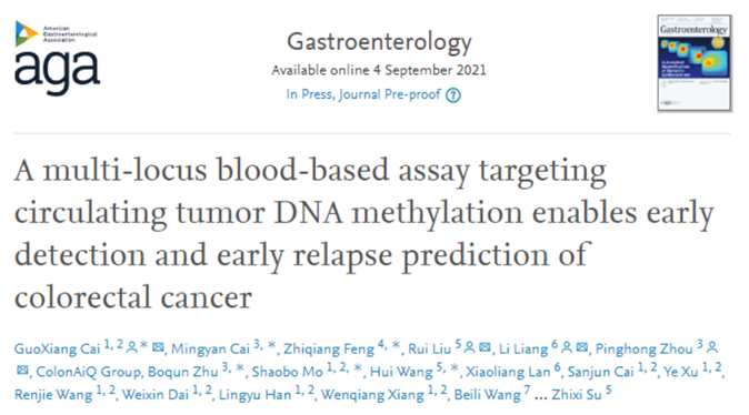近日,国际胃肠疾病领域顶级期刊《Gastroenterology》(IF 22.7)发表了由上海yl6776永利集团技术有限公司(以下简称“yl6776永利集团”)联合复旦大学附属中山医院、复旦大学附属肿瘤医院、广州市第一人民医院、南方医科大学南方医院、四川大学华西医院、大连大学附属新华医院的重磅科研成果:“A multi-locus blood-based assay targeting circulating tumor DNA methylation enables early detection and early relapse prediction of colorectal cancer(血液多基因甲基化检测可实现结直肠癌早筛和复发预测)”。