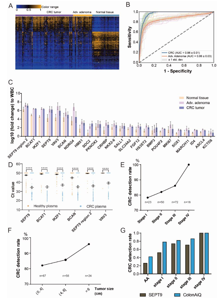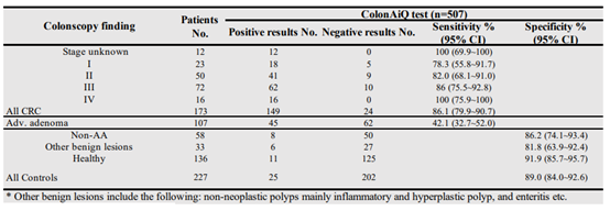 表1. ColonAiQ 在验证结肠癌早期检测中的表现