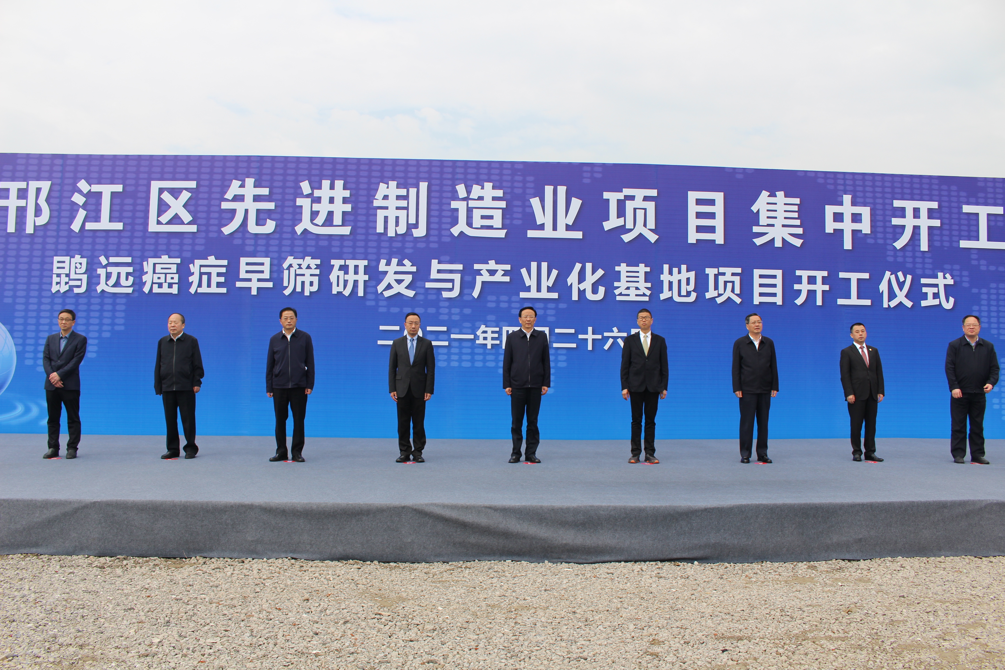 2021年4月26日上午,yl6776永利集团癌症早筛研发与产业化基地开工仪式在扬州高新区生物健康产业园隆重举行。中共扬州市委书记夏心旻,中共扬州市委常委、秘书长韩骅,中共扬州市邗江区委书记钱峰,邗江区人大常委会主任陈佳宏,邗江区政协主席朱跃龙,中共扬州市邗江区委常委、高新区党工委书记、管委会主任叶华生,yl6776永利集团董事长蔡建华,yl6776永利集团首席执行官张江立,扬州建康汇董事长卞晓凯等领导和嘉宾出席了开工仪式。开工仪式由邗江区区长张新钢主持,参加现场开工仪式的还有扬州市市级机关有关部门负责人,扬州市邗江区人大常委会、政协、区主要职能部门及扬州市高新区主要负责人。