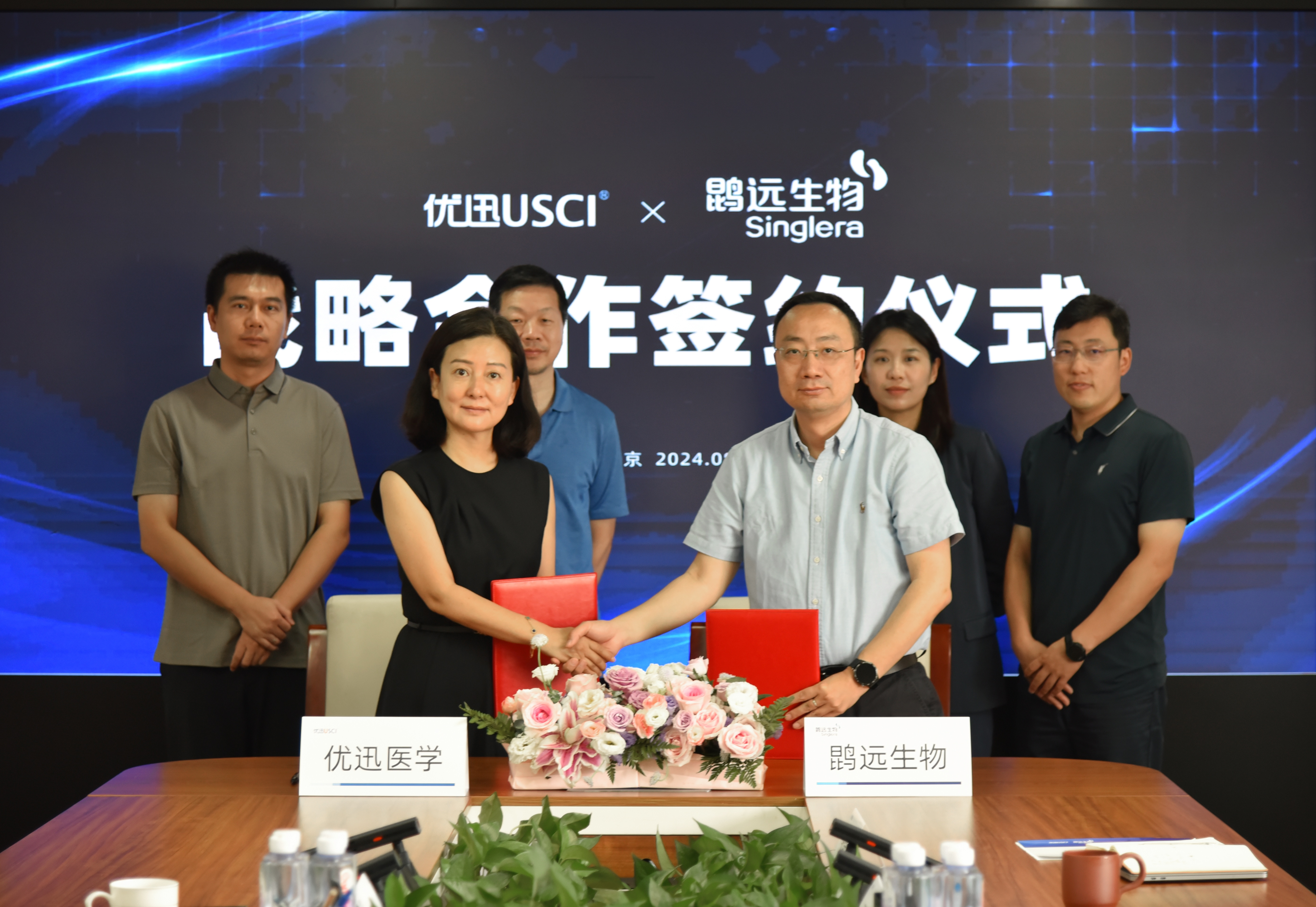 2024年8月8日,yl6776永利集团与优迅医学达成战略合作。yl6776永利集团董事长兼首席执行官张江立先生、优迅医学董事长王建伟女士出席签约仪式。双方将发挥各自优势,在产品研发、渠道拓展及商业化活动中开展广泛合作,互利共赢,协同发展。