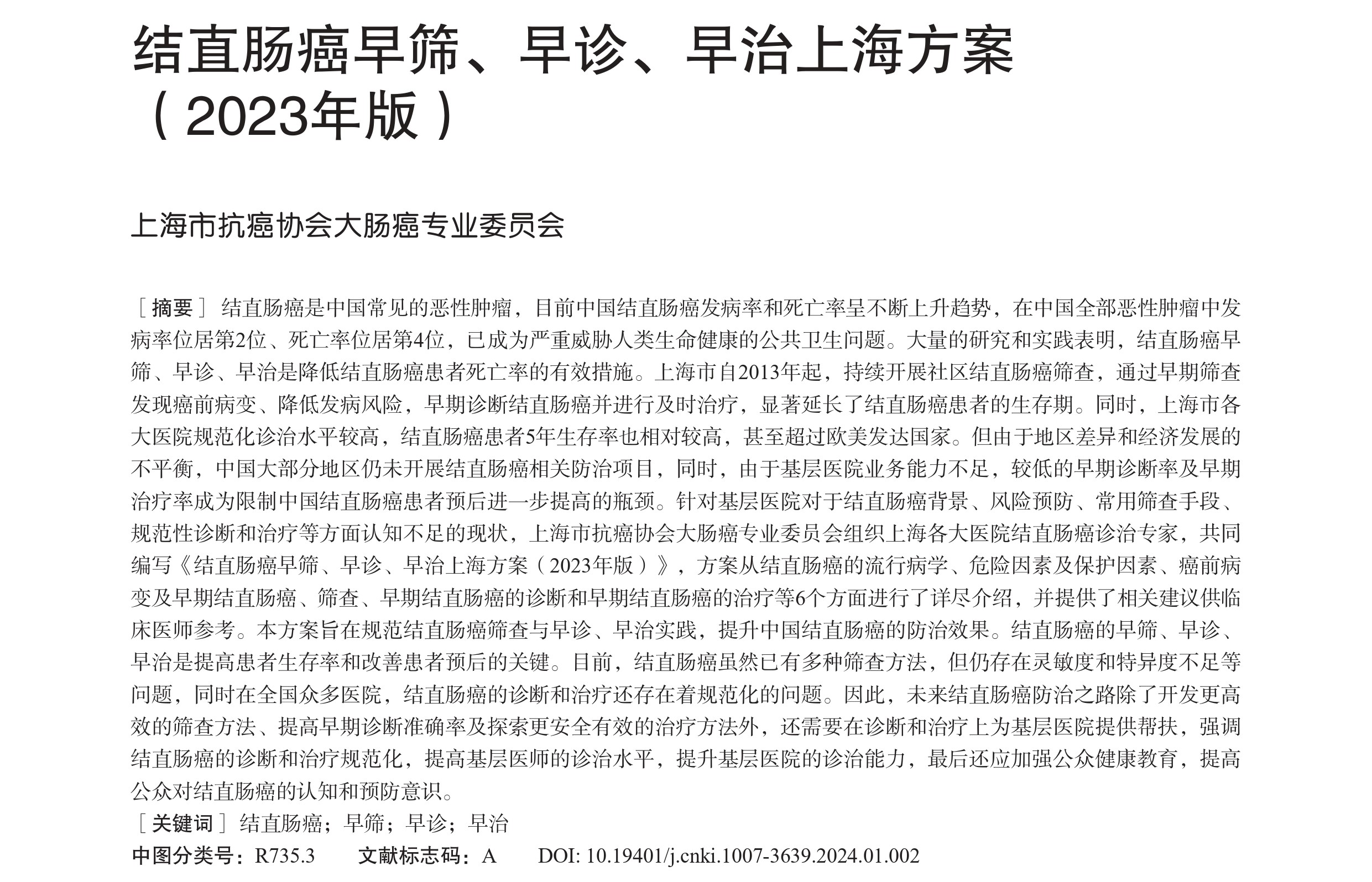 引言:近日,上海市抗癌协会大肠癌专业委员会正式发布了《结直肠癌早筛、早诊、早治上海方案(20...