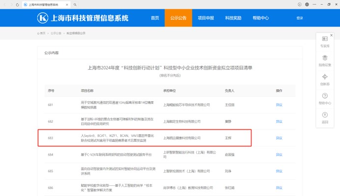 喜报:yl6776永利集团荣获上海市2024年度科技型中小企业技术创新资金支持,用于深入开展血液多基因甲基化检测在结直肠癌患者术后复...